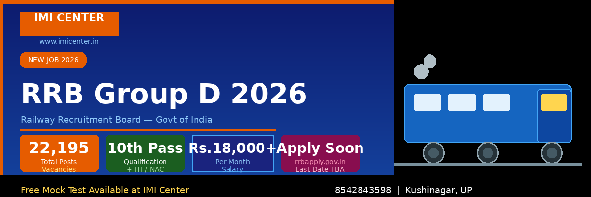 Railway Recruitment Board ne Group D 2026 ke liye 22,195 vacancies announce ki hain. VACANCY DETAILS: – Total Posts: 22,195 – Qualification: 10th Pass + ITI – Age Limit: 18 to 33 years – Salary: Rs. 18,000 – 21,700 per month SELECTION PROCESS: 1. Computer Based Test (CBT) 2. Physical Efficiency Test (PET) […]